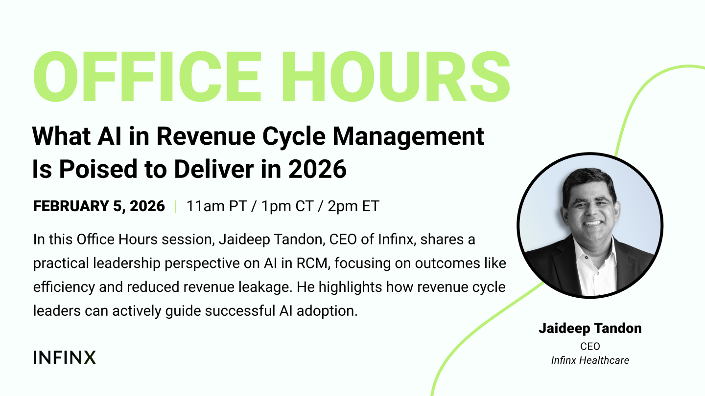 In this Office Hours session, Jaideep Tandon, CEO of Infinx, shares a pragmatic, leadership-driven perspective on the evolving role of AI in RCM. Rather than focusing on technology for technology’s sake, the conversation centers on outcomes: improving efficiency, reducing revenue leakage, and supporting better financial decision-making across increasingly complex healthcare environments. Jaideep discusses why fragmented data, payer variability, and operational nuance make oversimplified AI narratives risky—and how leaders can avoid these traps.